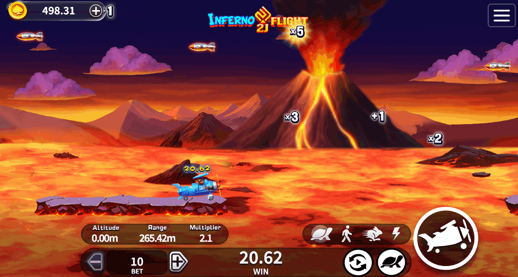 Inferno Flight combines the thrill of crash games with unique lava-themed mechanics. Whether you're chasing big multipliers or enjoying fast-paced gameplay, this game delivers a high-adrenaline experience every round.
