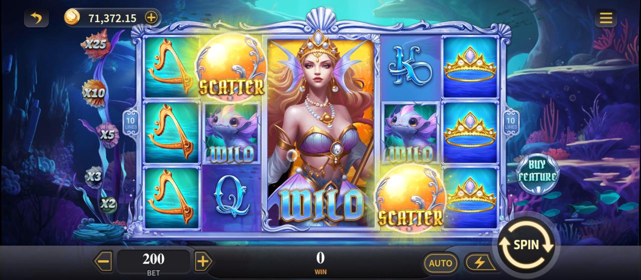Come dance with the mermaids! The mermaid is a giant wild symbol that increases the multiplier with every win, up to 25X.